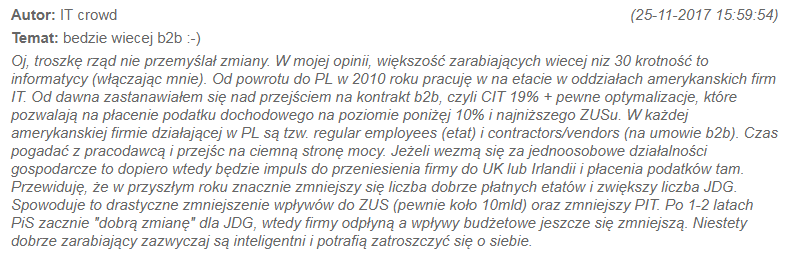 Ani pracownicy nie chcą rezygnować z części swojego wynagrodzenia, bo nie wierzą, że wyższe składki dadzą im w przyszłości wyższe emerytury z ZUS, ani pracodawcy nie patrzą przychylnie na te zmiany. Tak krótki okres vacatio legis nie pozwala im rozsądnie zaplanować tych zmian w ustalonych już planach finansowych na 2018 rok. Firmy mogą więc sugerować zmianę etatu na samozatrudnienie.
