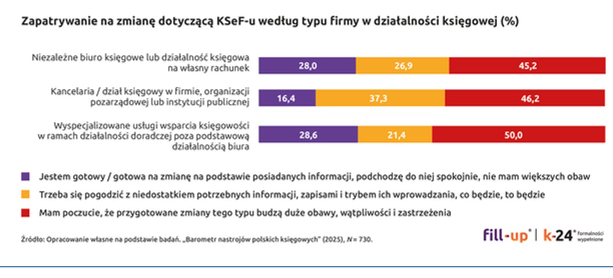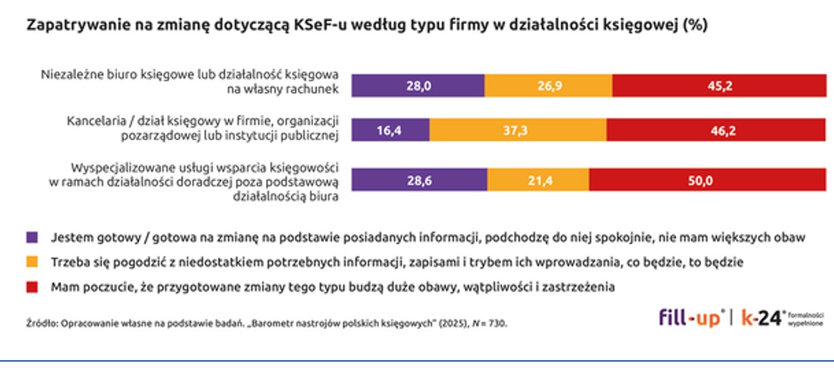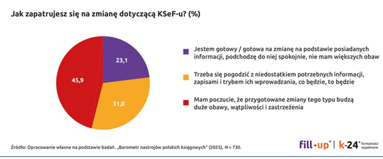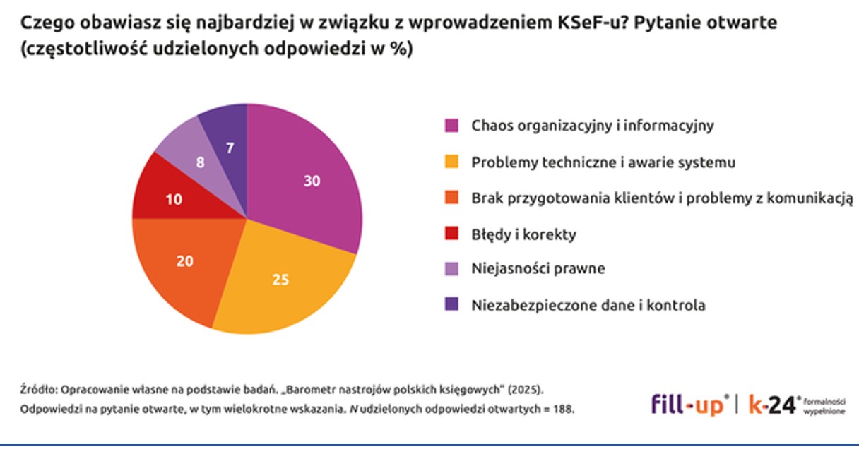 - Chaos organizacyjny i informacyjny: księgowi obawiają się dezorganizacji pracy, trudności w adaptacji do nowego systemu, braku jasnej ścieżki wdrażania i jednoznacznych interpretacji.