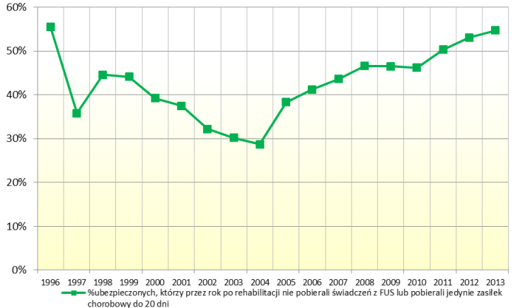 W tym roku (wg danych ZUS) ponad 54% pacjentów odzyskało zdolność do pracy. Osoby po ciężkich chorobach, urazach i nieszczęśliwych wypadkach odzyskują sprawność i kontynuują karierę zawodową. Renta z tytułu niezdolności do pracy jest coraz rzadszym scenariuszem, mimo, że jeszcze niedawno stanowiła dla osób z pogarszającym się zdrowiem jedyną perspektywę.