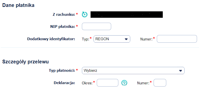 - nadawcę (w przypadku papierowego blankietu wpłaty) - oczywiście przy realizacji przelewu bankowości elektronicznej nadawca jest domyślny.