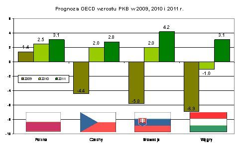 Autorzy raportu podkreślają, że sytuacja naszej gospodarki na tle innych państw OECD, dotkniętych recesją, przedstawia się korzystnie. Zdaniem analityków Organizacji utrzymanie w Polsce wzrostu gospodarczego w 2009 r. na poziomie 1,4 proc. będzie możliwe m.in. dzięki wcześniejszemu łagodzeniu polityki monetarnej, osłabieniu złotego, relatywnie małemu uzależnieniu od zewnętrznych rynków zbytu, obniżeniu klina podatkowego oraz inwestycjom infrastrukturalnym finansowanym ze środków unijnych.