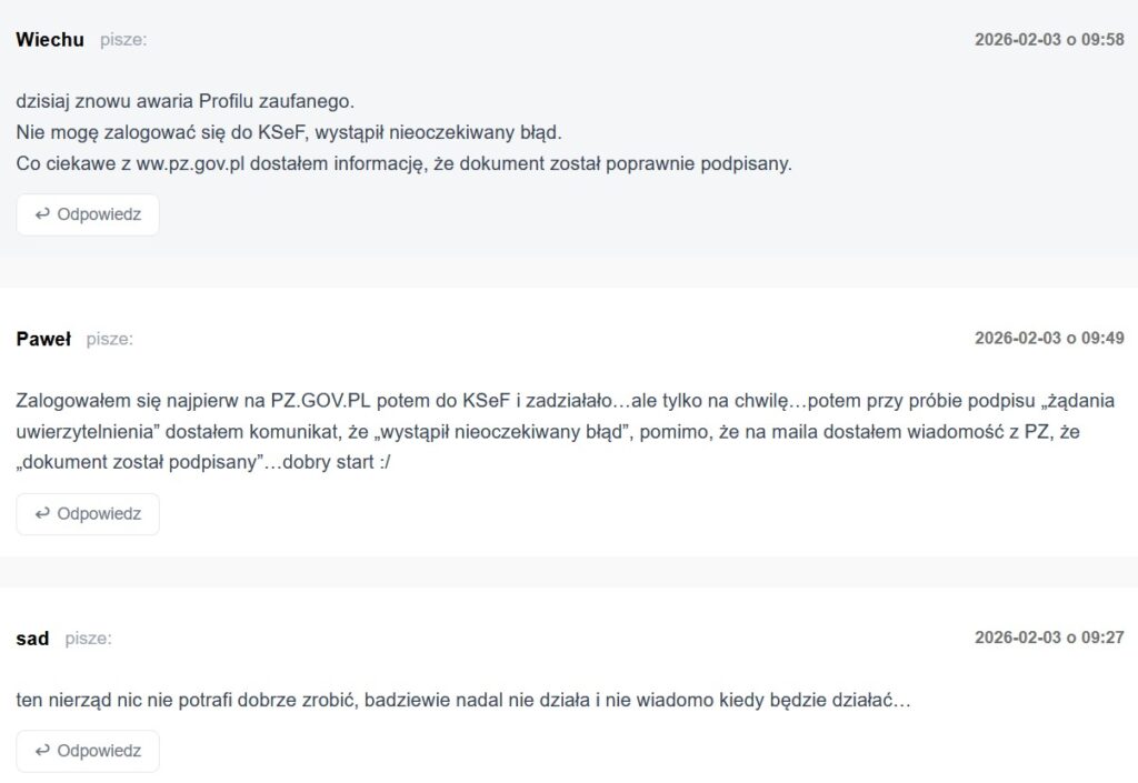 Generalnie to nie można się zalogować w ogóle na gov.pl. Nie używam KSeF-u, ale mam inne sprawy do załatwienia. A portale rządowe leżą i kwiczą.