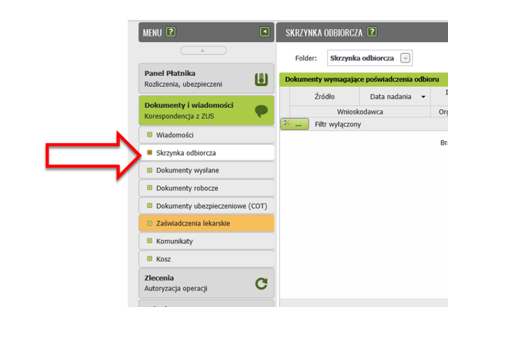 Zakład Ubezpieczeń Społecznych wychodząc naprzeciw przedsiębiorcom przygotował dokładną instrukcję poruszania się po platformie ZUS PUE, w celu odnalezienia decyzji związanej ze zwolnieniem ze składek ZUS. Zdaniem ZUS, aby odczytać korespondencję należy bezpośrednio po zalogowaniu do plarformy PUE ZUS kierować się do panelu ,,Ogólny" lub ,,Płatnik", a następnie w bocznym menu wybrać pozycję ,,Skrzynka odbiorcza".