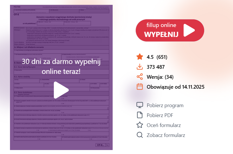 CIT-8 – Zeznanie o wysokości osiągniętego dochodu (poniesionej straty) i należnego podatku dochodowego od osób prawnych nie uległo zmianie w 2026 roku. Aktualnie zastosowanie ma wersja 34 – obowiązująca od 14 listopada 2025 roku.