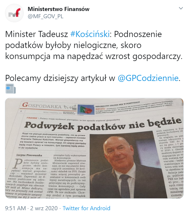 „Podnoszenie podatków byłoby nielogiczne, skoro konsumpcja ma napędzać wzrost gospodarczy.”