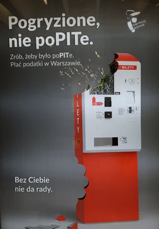 Tym bardziej, że Warszawa właśnie 1 kwietnia ruszyła z kampanią zachęcająca do płacenia podatków na swoim terenie. Kampania o nazwie zawierającej grę słów „Pogryzione, niepoPITe” ma pokazywać „przedmioty, miejsca, obiekty użytku wspólnego, które mogłyby funkcjonować dobrze, ale są pogryzione. Gdyby były poPITe, innymi słowy, gdyby warszawiacy płacili PIT-y w mieście, te obiekty byłyby całe i w pełni funkcjonalne.”
