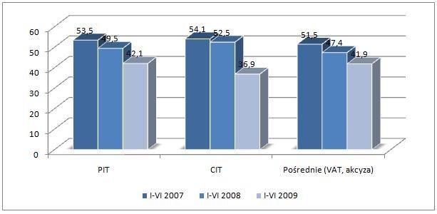 Ministerstwo Finansów przygotowało szacunkowe dane o wykonaniu budżetu w I półroczu 2009 r. Z informacji tej możemy się dowiedzieć, że nie płacimy podatków, mamy mniejsze dochody (niższy PIT i CIT), firmy sprzedają mniej konsumentom (niższy VAT), mniej pijemy alkoholu, mniej palimy i kupujemy mniej samochodów (niższa akcyza). Mniej, niż oczekiwało Ministerstwo Finansów i budżet, bo nominalnie gotówki wpłynęło więcej. Trudno zatem powiedzieć, jak szacunkowe wykonanie budżeto w I połowie roku wpłynie na ewentualne decyzji co do wysokości podatków.