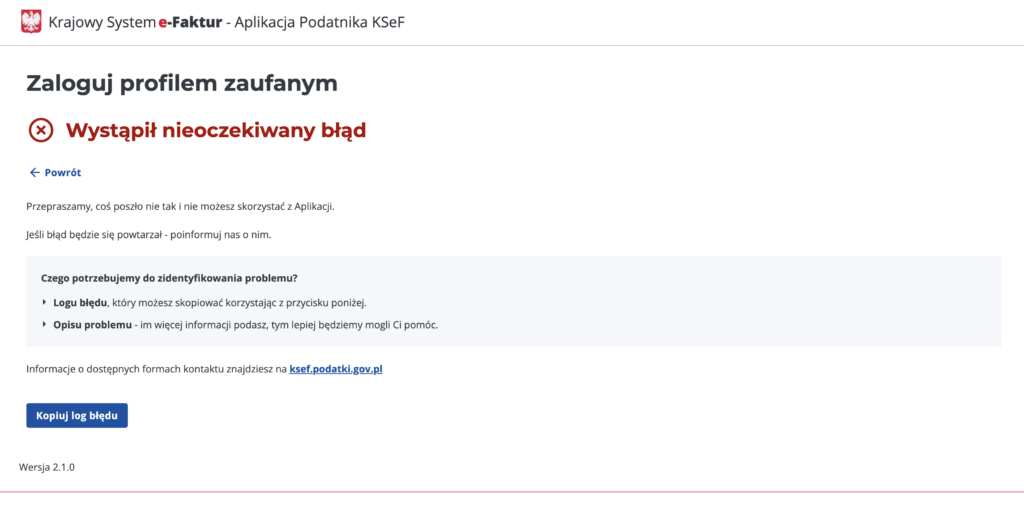 Profil zaufany dziala do innych funkcji. Nie dziala tylko przy próbie logowania do ksef. Wyswietla komunikat, ze wyczerpany zostal limit zapytań. Nie dziala tez aplikacja mobilna – wyswietla komunikat że usługa jest niedostępna.