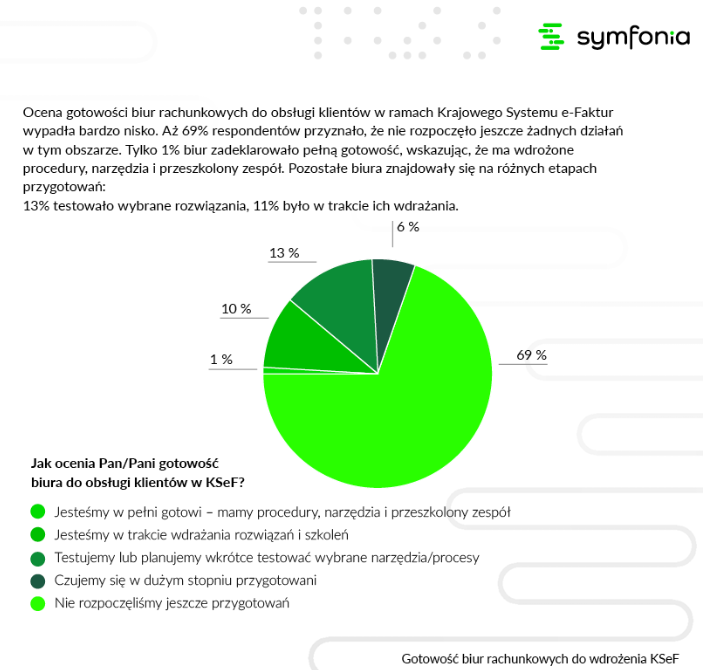 Wdrożenie KSeF to zmiana, która niesie konsekwencje na wielu poziomach – nie tylko technologicznym, ale również organizacyjnym, operacyjnym i procesowym – Wyniki raportu Symfonii pokazują wyraźnie, że to ostatni moment na podjęcie kluczowych decyzji. Tak duży odsetek nieprzygotowanych biur to ogromna grupa, która nie może już dłużej odkładać integracji. KSeF to nie tylko nowa technologia, to konieczność przedefiniowania procesów współpracy z klientami i uporządkowania obiegu dokumentów. Największe obawy biur, czyli ryzyko błędu i komunikacja z klientami, tylko potwierdzają, że samo narzędzie nie wystarczy – dodaje Bruździńska-Wójcik.