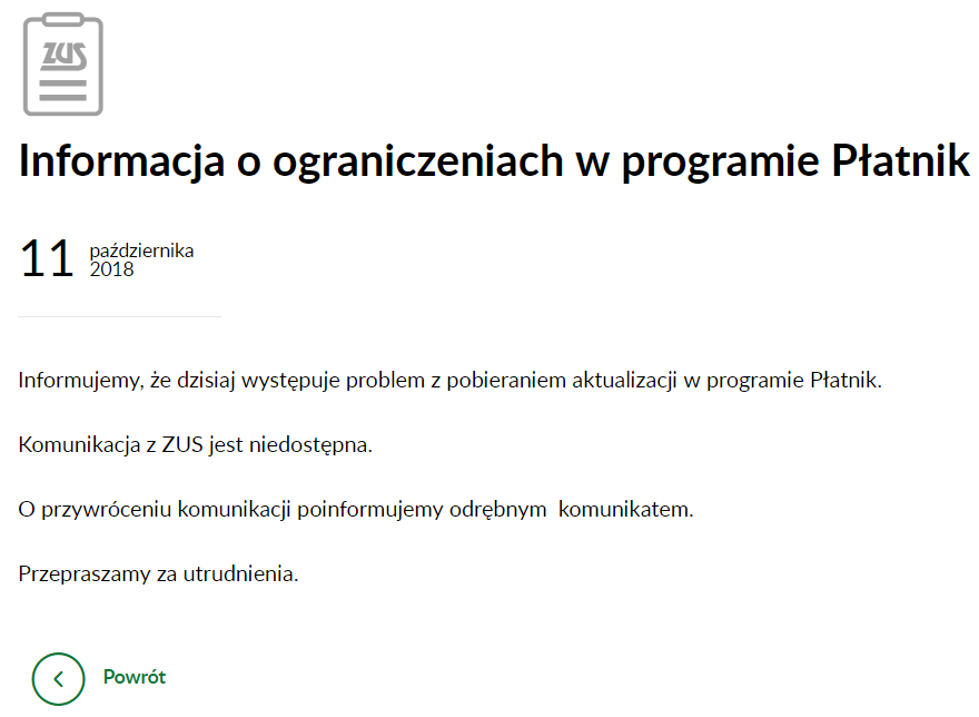 Problem był na tyle duży, że Zakład Ubezpieczeń Społecznych opublikował nawet komunikat informujący o problemie z pobieraniem aktualizacji w programie Płatnik.