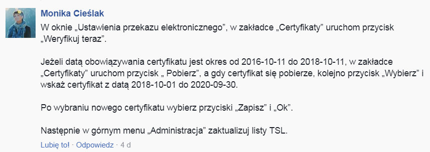 Po usunięciu awarii, ponownie opublikowano instrukcję aktualizacji certyfikatu ZUS dla użytkowników programu Płatnik i innych programów służących do przesyłania dokumentów do ZUS.