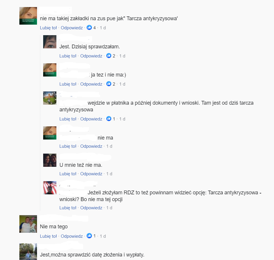 Część płatników składek chcących sprawdzić status złożonego przez siebie wniosku napotkało na niemałe problemy. Nie w każdym bowiem przypadku poznanie szczegółów złożonego wniosku okazało się możliwe. Płatnicy skarżą się w szczególności na brak zakładki ,,świadczeniobiorca” oraz ,,Tarcza antykryzysowa” w PUE.