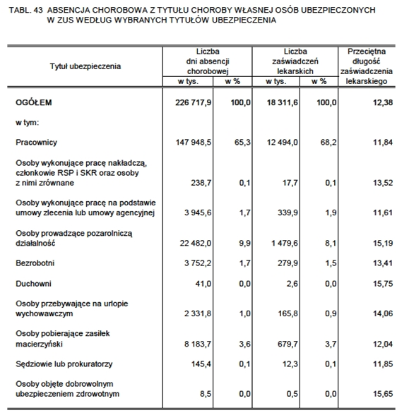 Przedsiębiorcy rzadko chorują, a nawet, jeśli dopadnie ich grypa to rzadko chodzą na zwolnienia lekarskie. Jeśli porównamy ilość dni, które na zwolnieniu spędzili pracownicy i pracodawcy to widzimy ogromną dysproporcję. Z danych statystycznych wynika, że zaledwie 9,9 proc. wszystkich zwolnień to te, na których w 2015 r. przebywały osoby prowadzące własną działalność. Właściciele firm twierdzą, że chorowanie im się nie opłaca, bo zasiłek jest niewielki, a na wizytę u lekarza i wysyłanie formularzy do ZUS, nie mają czasu. Jest także inny powód braku zwolnień wśród przedsiębiorców. Wielu z nich nie jest ubezpieczonych na wypadek choroby.
