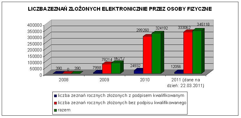 Już czwarty rok podatnicy mają możliwość przesyłania deklaracji rocznych przez Internet. Przełomowy dla upowszechnienia tej formy rozliczania był kwiecień 2009 r., kiedy powstała możliwość składania pierwszych zeznań PIT-37 bez podpisu kwalifikowanego. Umożliwiło to skokowy wzrost korzystania z systemu e-Deklaracje służącego do rozliczeń przez Internet – podczas gdy w 2008 r. skorzystało z niego 390 podatników, to rok później już blisko 90 tys. (z tego prawie 80 tys. złożyło zeznania bez podpisu kwalifikowanego).